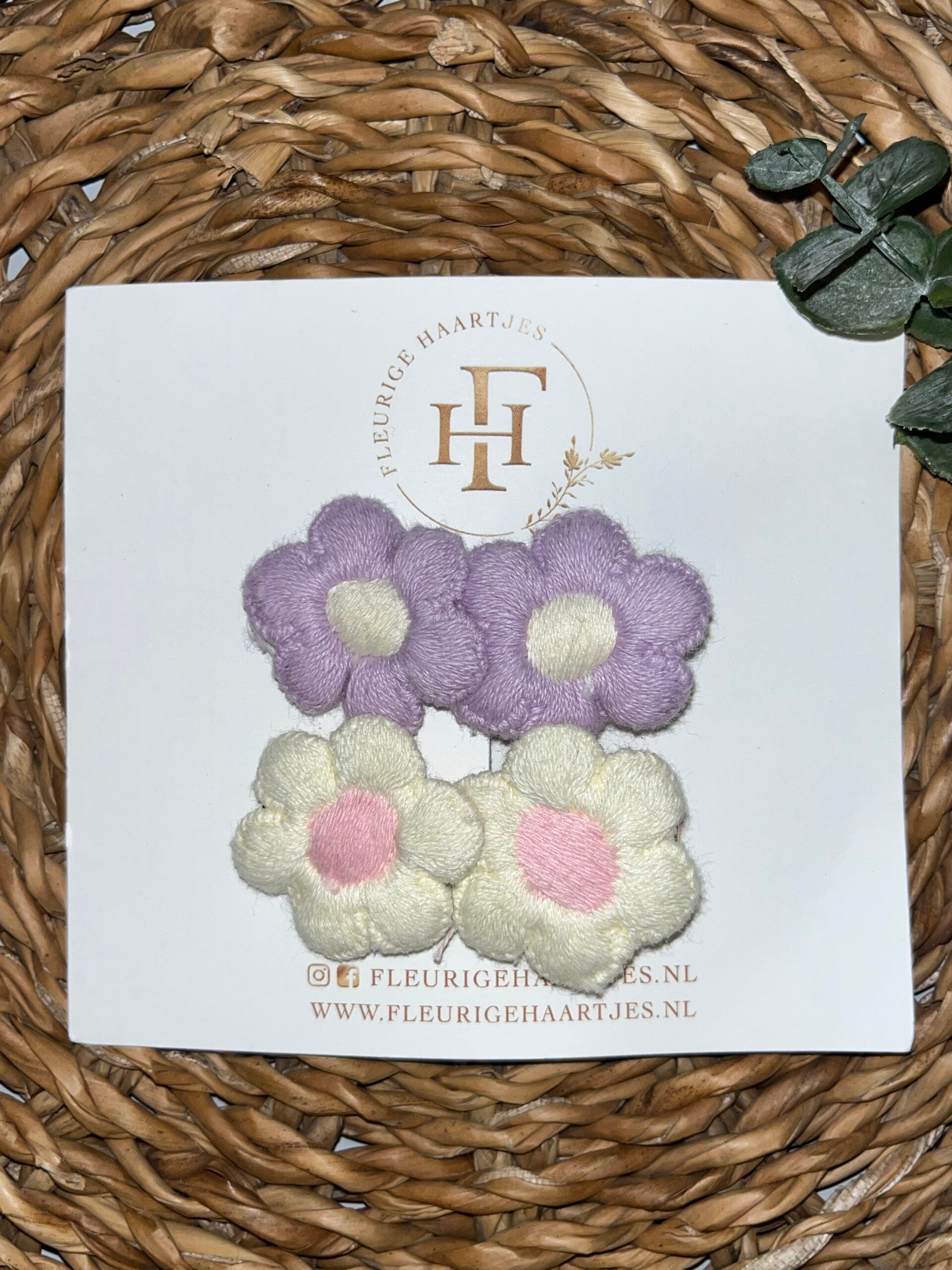 Dit vrolijke bloemen duo is bevestigd op alligator clips van 5 cm