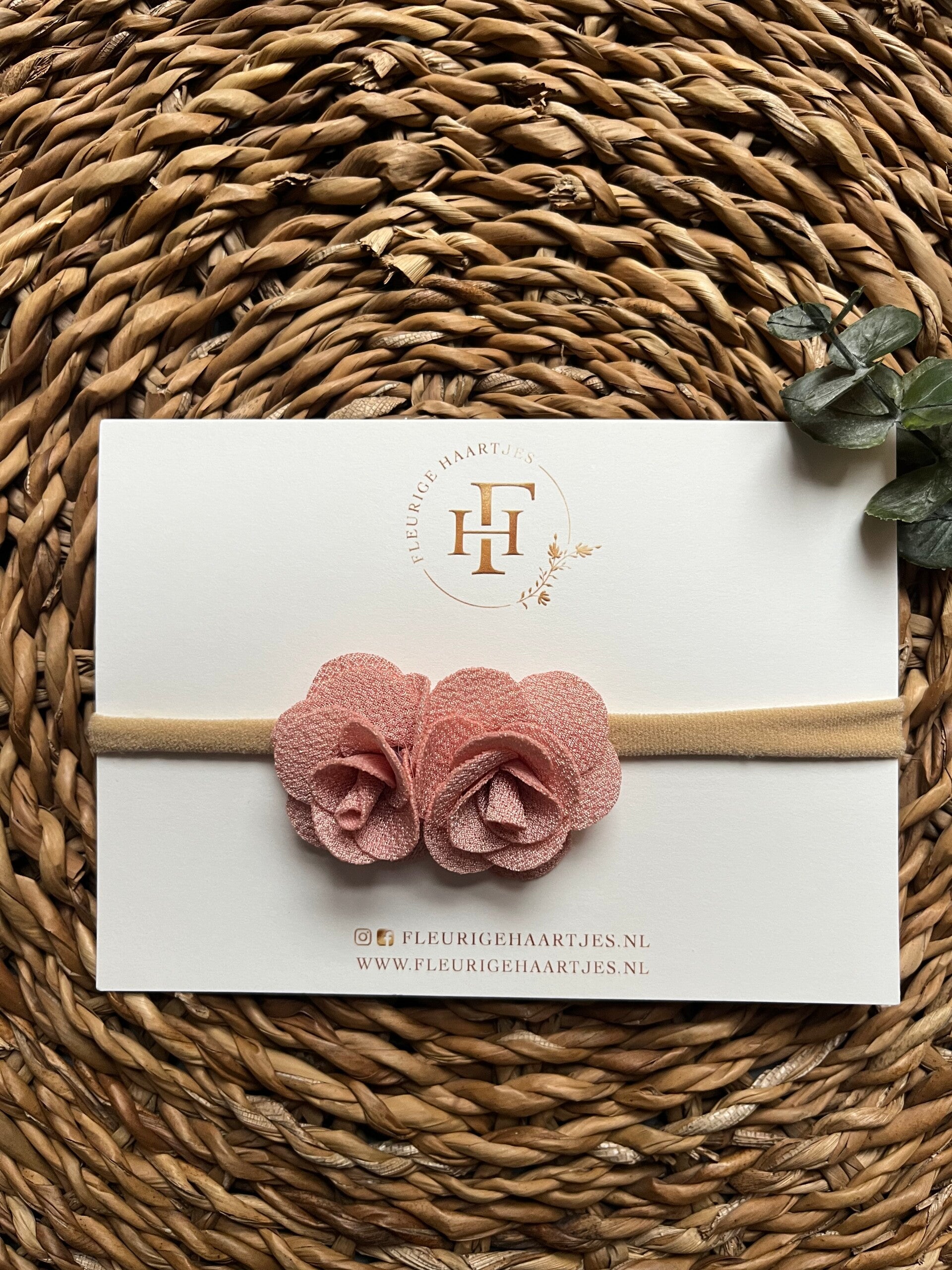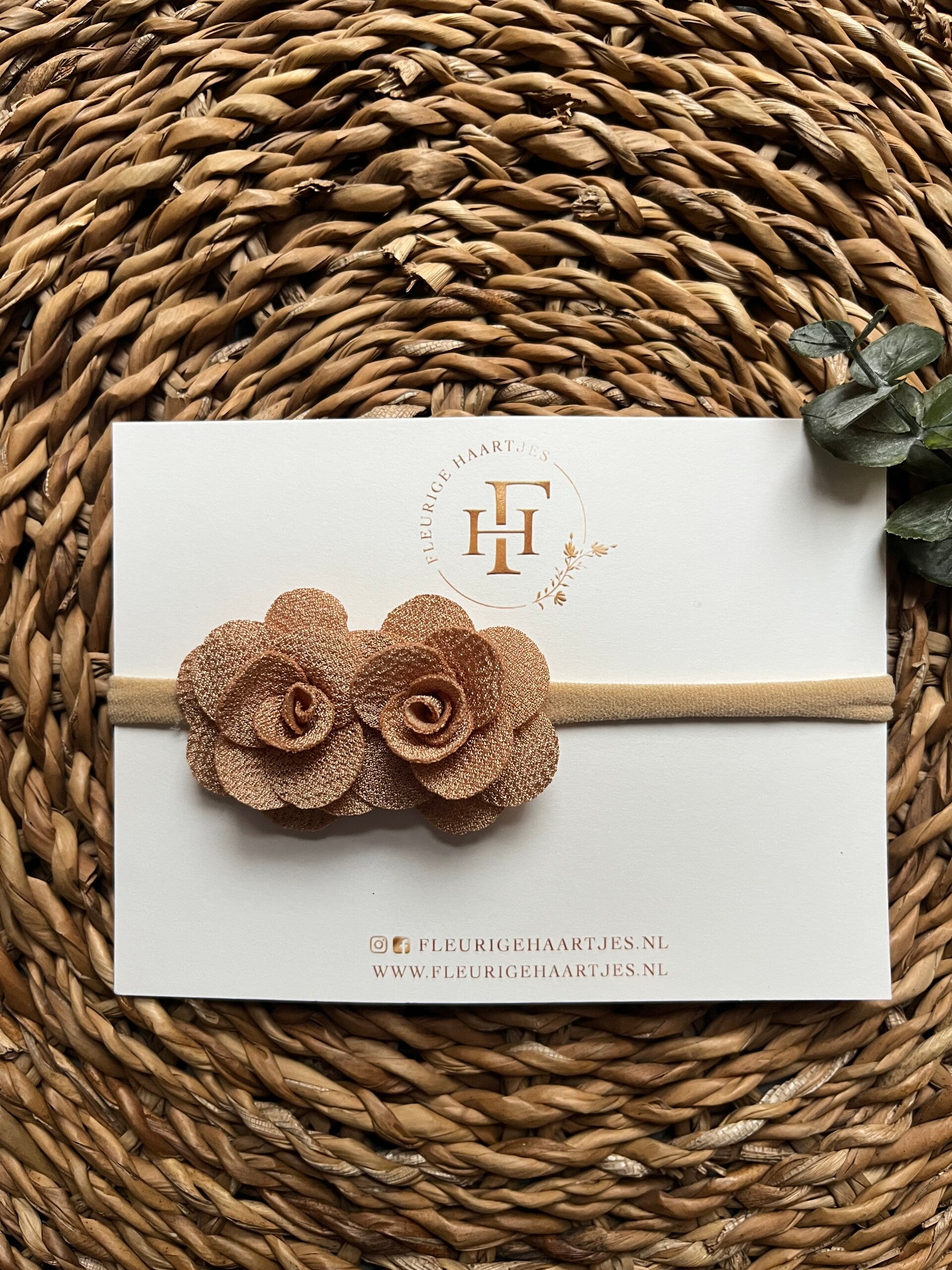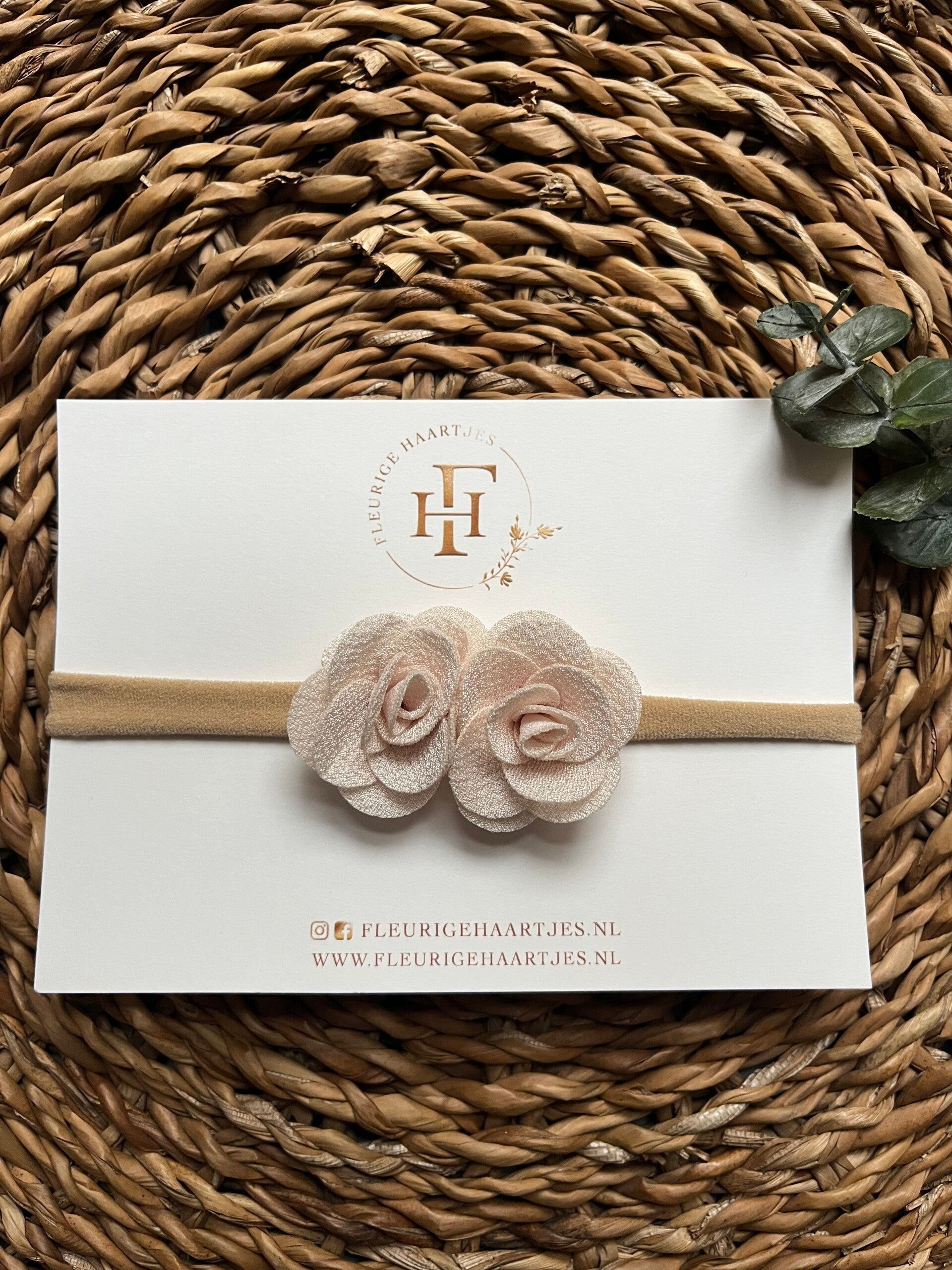 Deze leuke haarbandjes zijn verkrijgbaar in 3 kleuren rozen. De rozen hebben een klein glittertje.